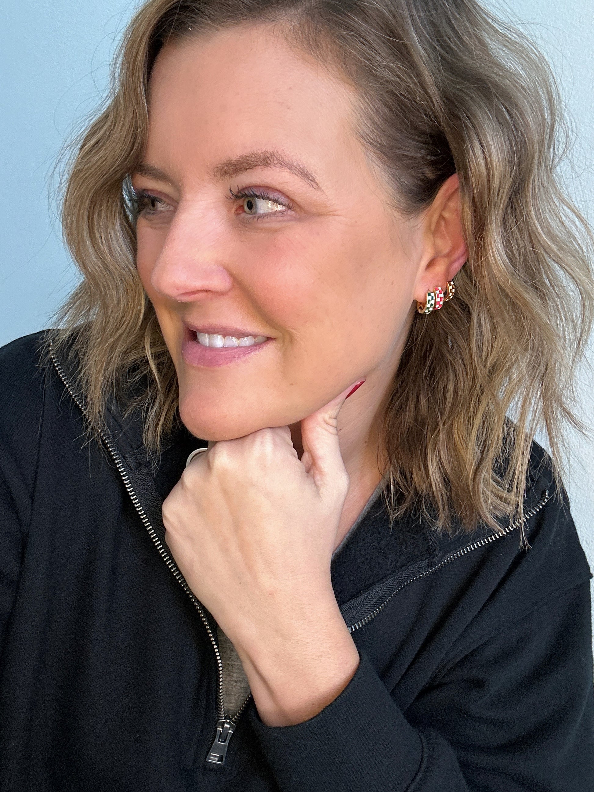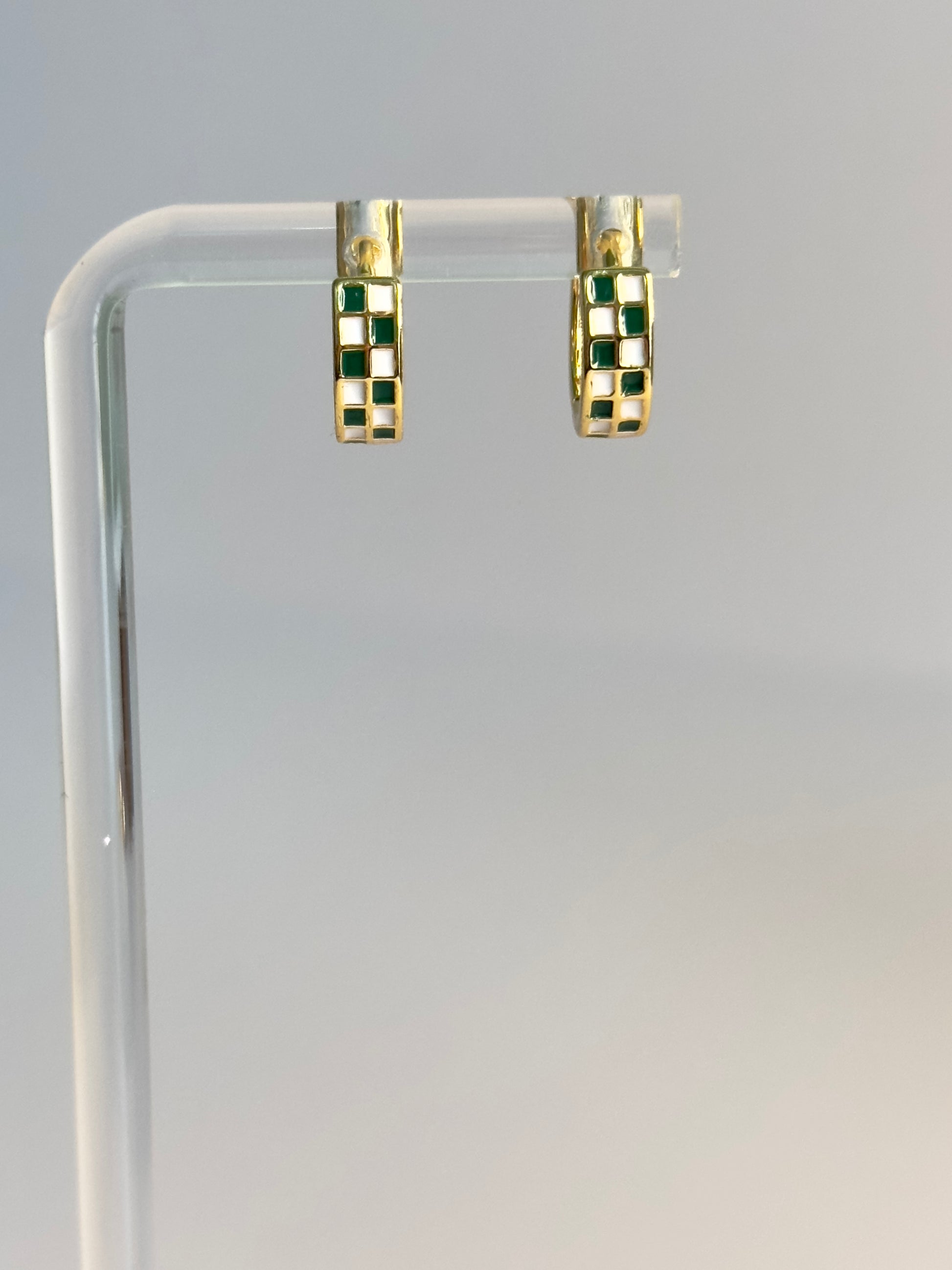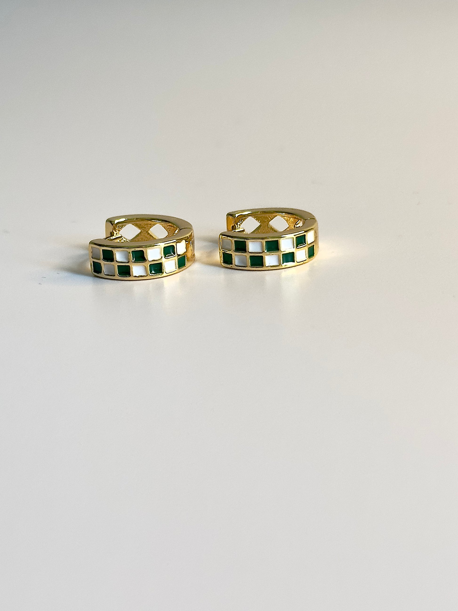 Stay comfortable and stylish all day long with these green and white checkered huggies. The gold-filled material makes them hypoallergenic for sensitive ears, so you can show off your fashion sense without any worries. These huggies are the perfect combination of quality and trendiness, allowing you to rock them with confidence.