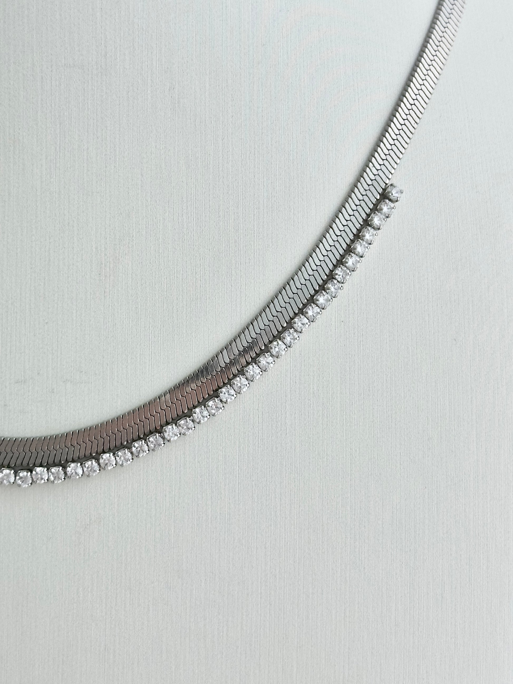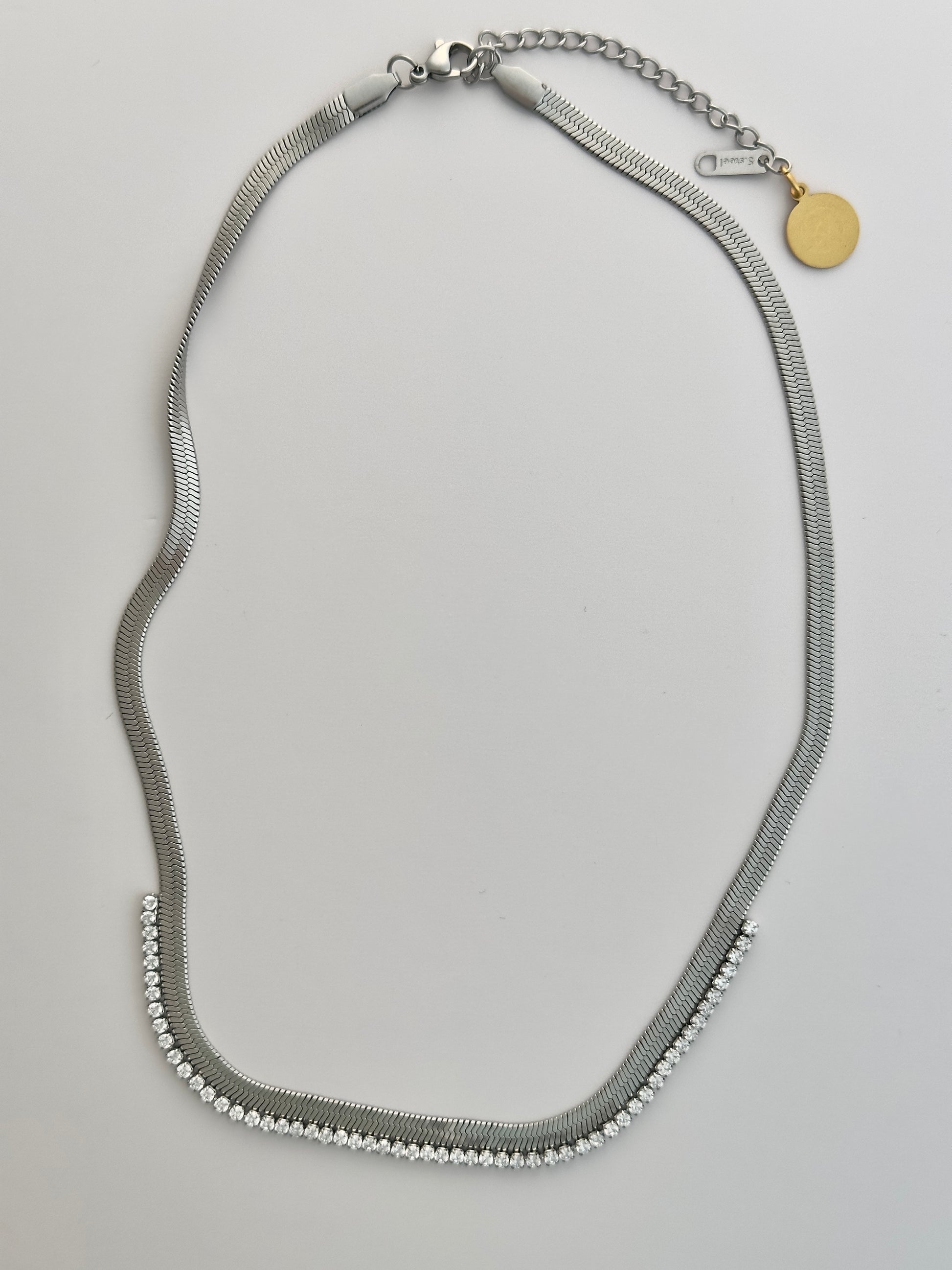 This fun detail to a 16” herringbone necklace features sparkling crystal pavé accents and a 3” extender for adjustable length. Designed to resist tarnishing, it keeps its stunning shine wear after wear. Great for layering or wearing alone!