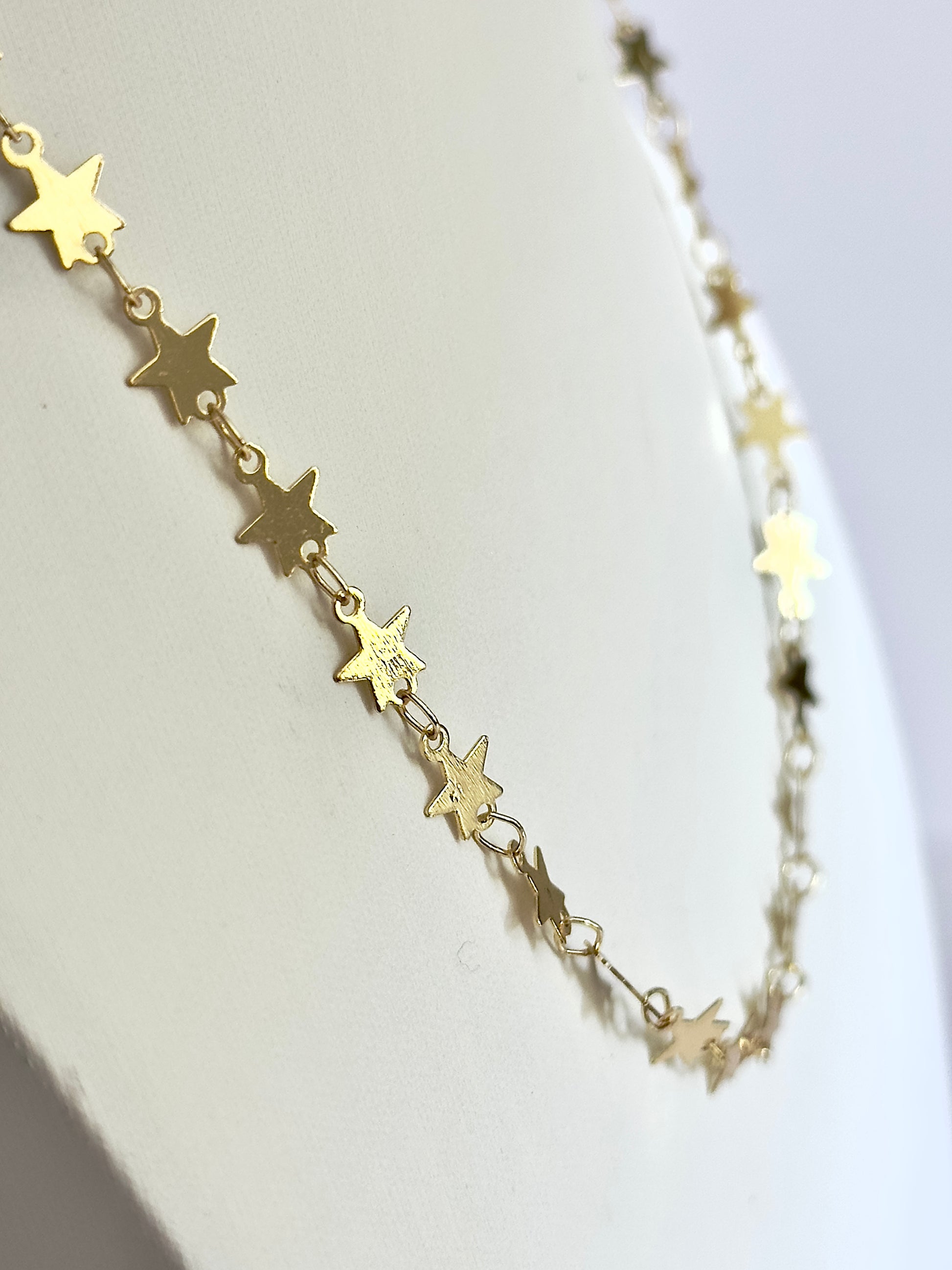 This star chain necklace, made with 18k gold filled material, features a 15.5" length plus a 2" extender. Wear it solo for a subtle shine or layer it with other pieces to create a bold, stylish statement.