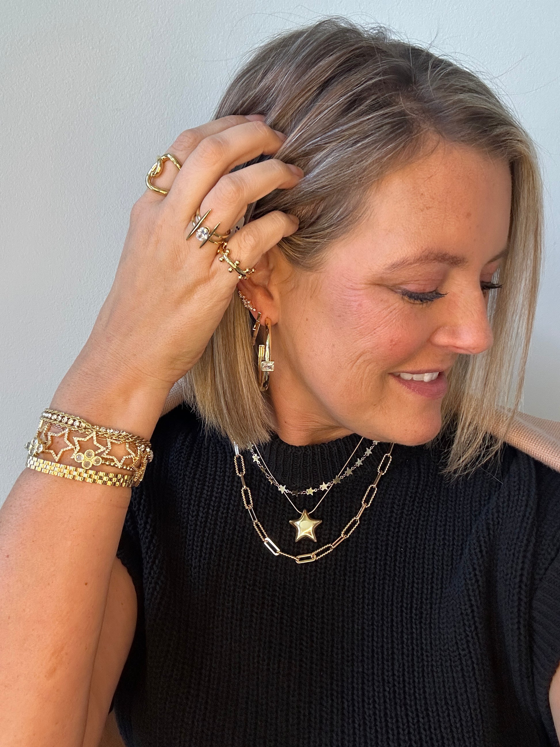 Play up your style with this 18k gold-plated stainless steel studded ring, ideal for stacking and mixing with your favorite pieces!