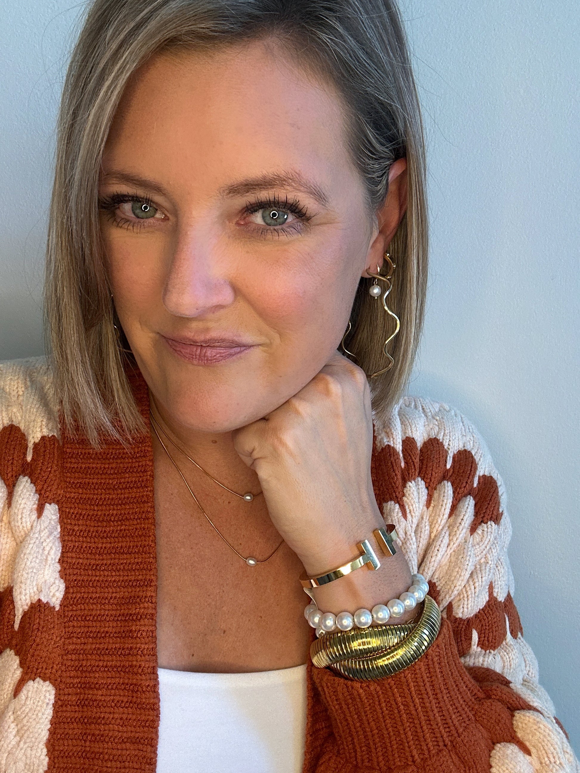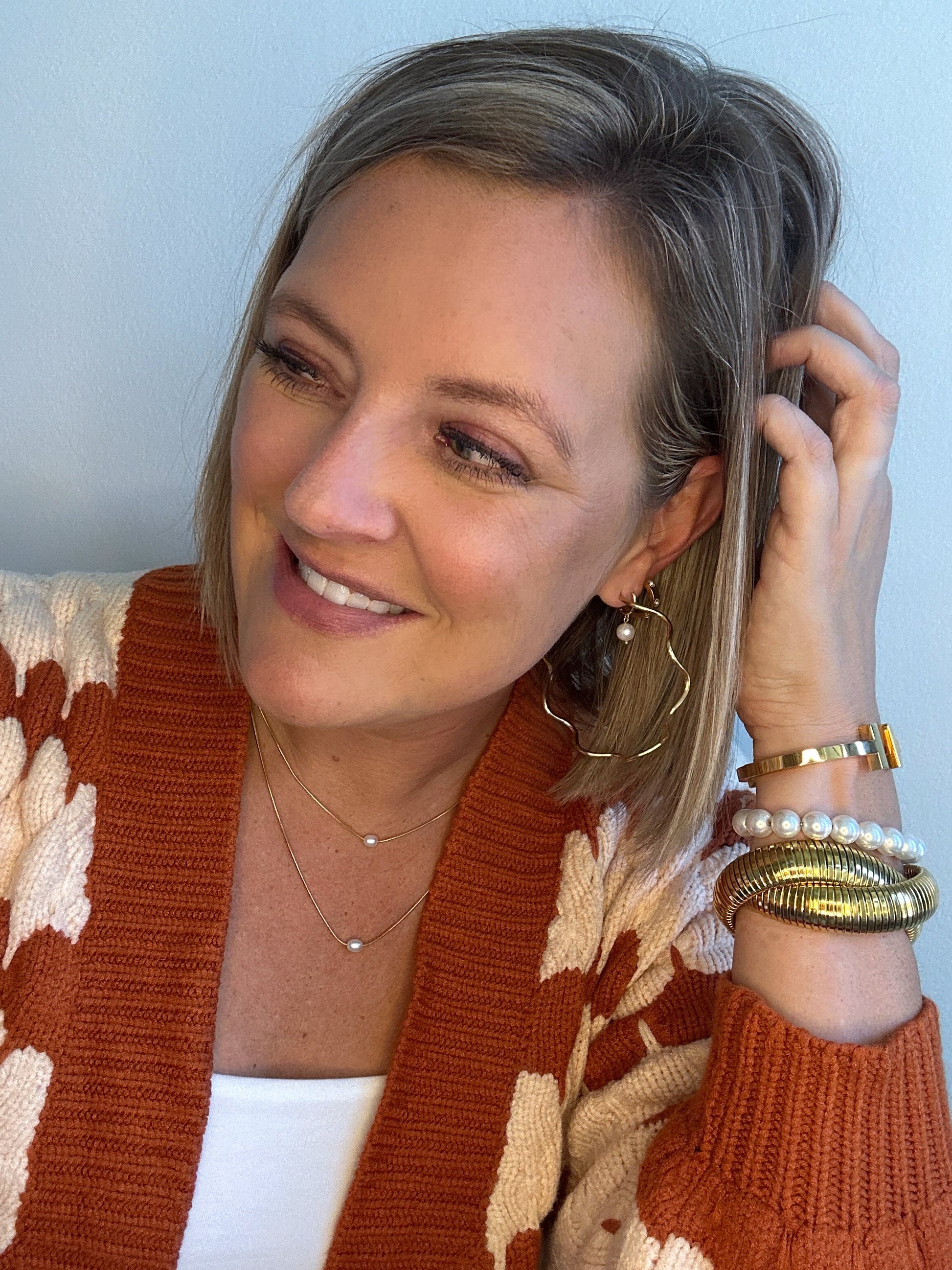 Experience the ultimate in style and versatility with our Wavy Large Hoops. Made with 18k gold plating over stainless steel, these hoops measure over 3.5 inches and add a playful twist to the classic hoop design. Not only are they stylish, but they're also incredibly lightweight, making them perfect for all-day wear. Elevate your jewelry game with these fun and chic hoops!